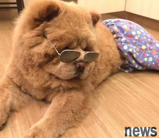 The Chow Chow looks handsome when wearing glasses, very similar to the way Li Ronghao wears glasses in "Riding the Wind and Waves".