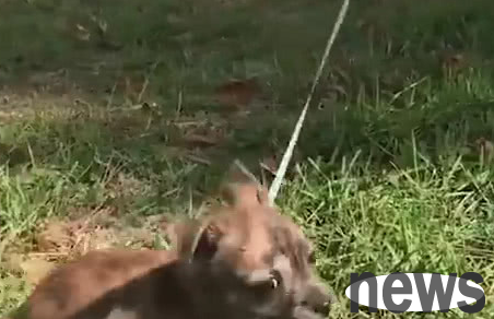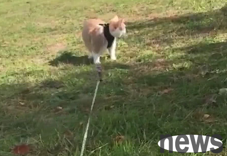 The orange cat suddenly became interested in the ropes on its body, and slowed down and started playing.