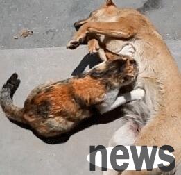 The little milk cat transformed into a little thief cat and went to steal the puppy s mother s milk to drink. The dog s mother s reaction was unexpected!