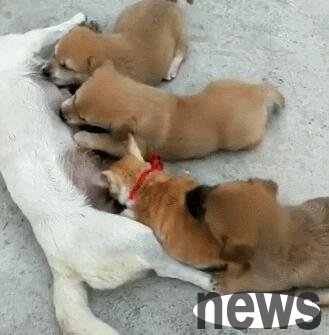 The mother dog in the video is also quite awesome. The three dogs have the same brown fur as those picked up from outside, while the mother dog has white fur. It’s like raising someone else’s child. If you are careful, you will find that there is a dog eating among these dogs. This little milk cat was so blatant that it occupied a nipple and even occupied the position of a small dog.