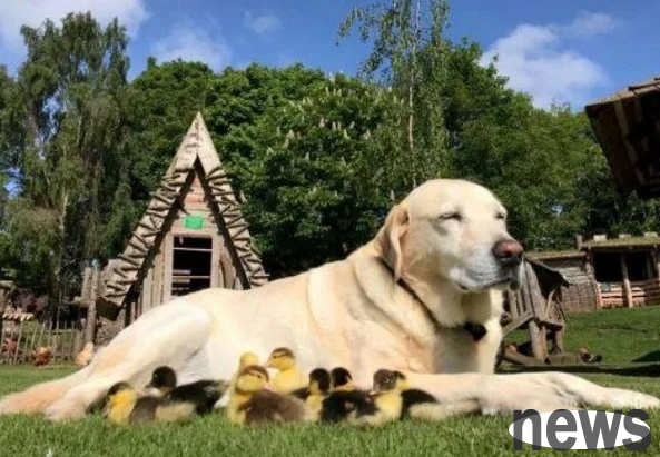 After serving as a guide dog for 10 years, Frey will have an instinct to support the "old, weak, sick and disabled", so he actively takes Jamie to help the ducklings, and also acts as the ducklings' new mother, just like a gentle and considerate puppy.