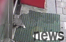The boss checked the surveillance video at the door and found that the cat ran from the street. It first wandered around the door of his restaurant for a while, and then suddenly banged against the door with its body for some unknown reason.