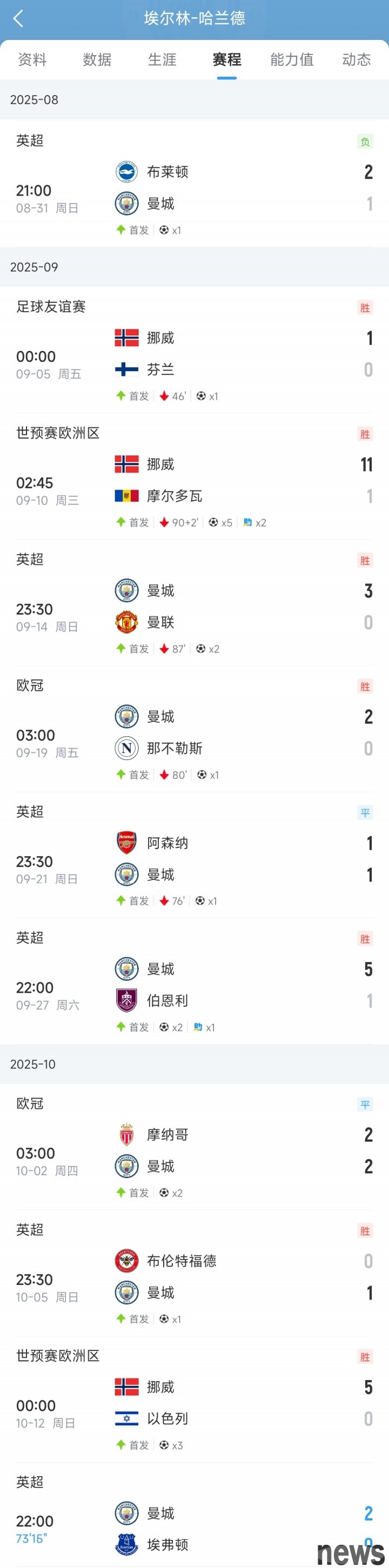 Horrible demon! Haaland scored in 11 consecutive games for Manchester City and the national team, scoring 21 goals in 11 games!