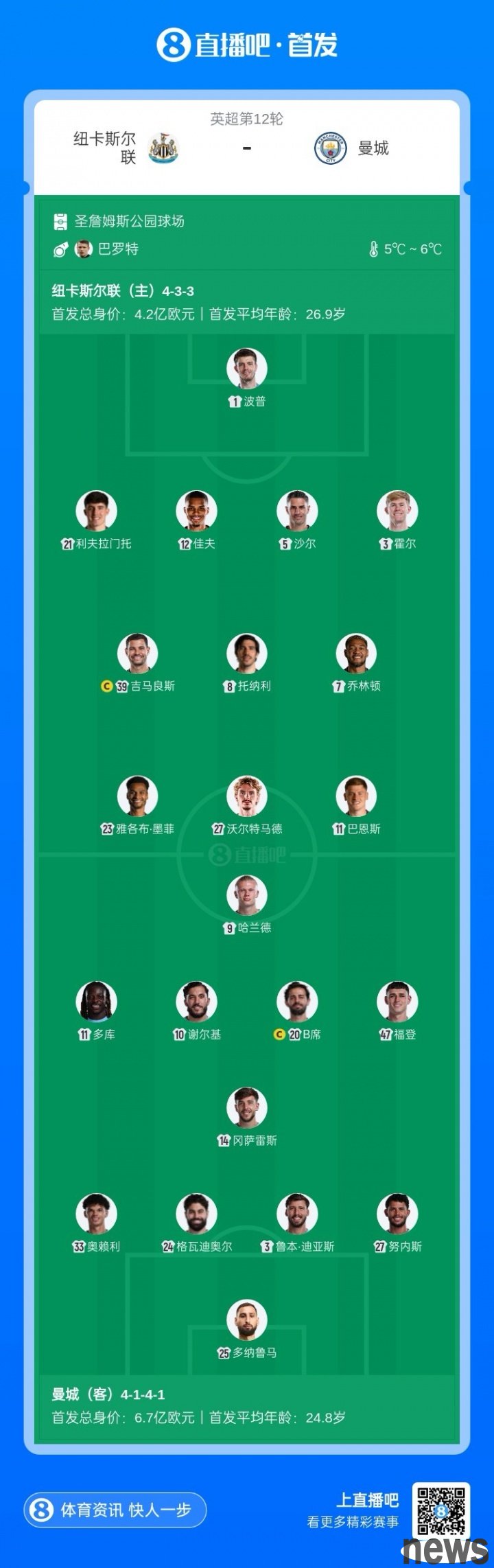 November 23 News In the 12th round of the Premier League, Newcastle vs. Manchester City at home is about to begin. Started before the game. In this game, Haaland and Walter Mader are facing a strike showdown. Manchester City is currently on a 2-game winning streak in the league, while Newcastle has a 2-game losing streak in the league.