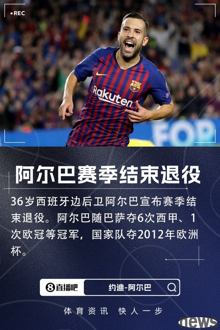 Farewell! Official: The 36-year-old Barcelona legendary defender Alba announced his retirement at the end of the season