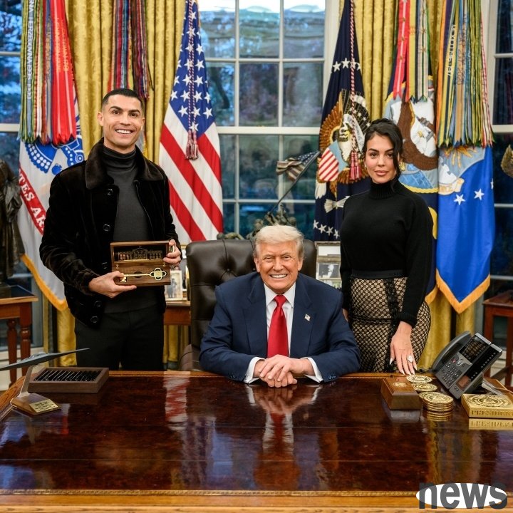 Post: The Trump White House presented Ronaldo with a gold-plated key, and Ronaldo became the first athlete to receive a White House Golden Key.