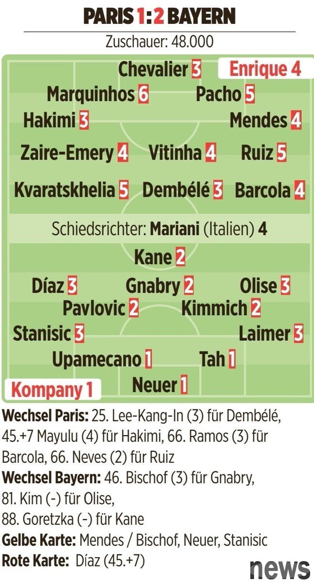 Dias could be called the "dominant player" in the first half. He came up and completed an excellent blitz to score, which frustrated Paris, who was not in the state. Then he relied on his own enthusiasm to intercept the defensive end led by Marquinhos and complete the goal. After 2-0, Bayern is confident of victory.